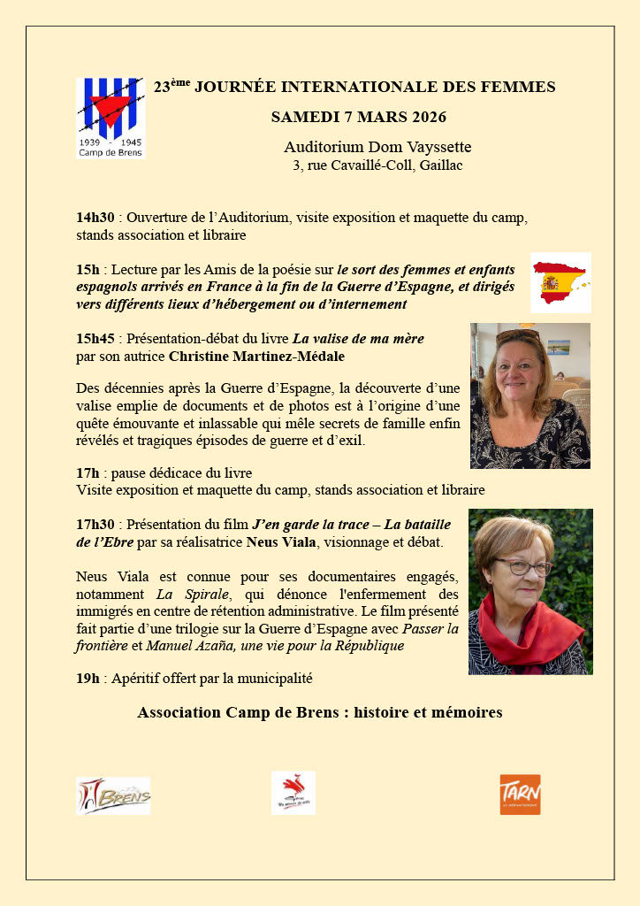 Samedi 7 mars 2026Du 14h30 à 19h00GaillacOrganisé par Association Camp de Brens : histoire et mémoires